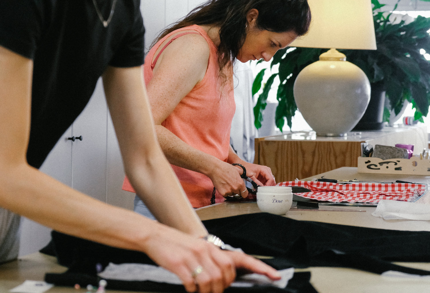 Marie George (right), sewing and surfing soul, assists The Loft Atelier on the side between waves and her own stitches.